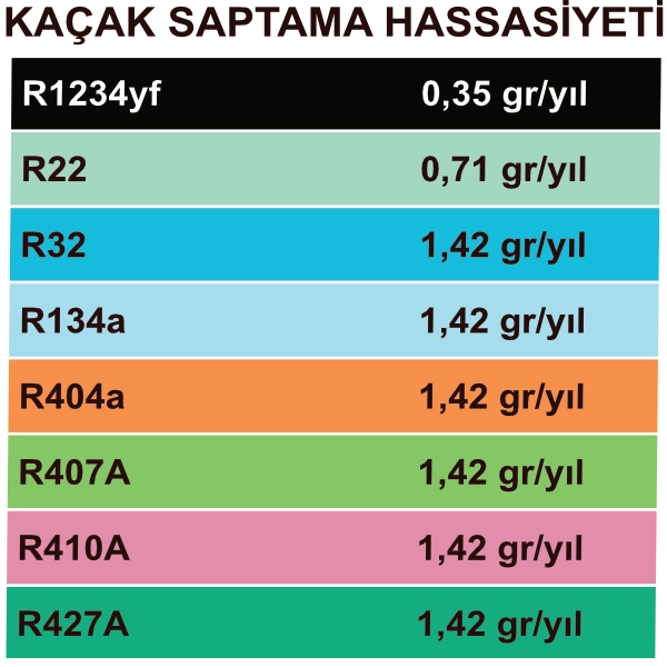 - Yılda toplam 1 gr’ lık kaçakları tespit yeteneği (bknz. ürün kataloğu)