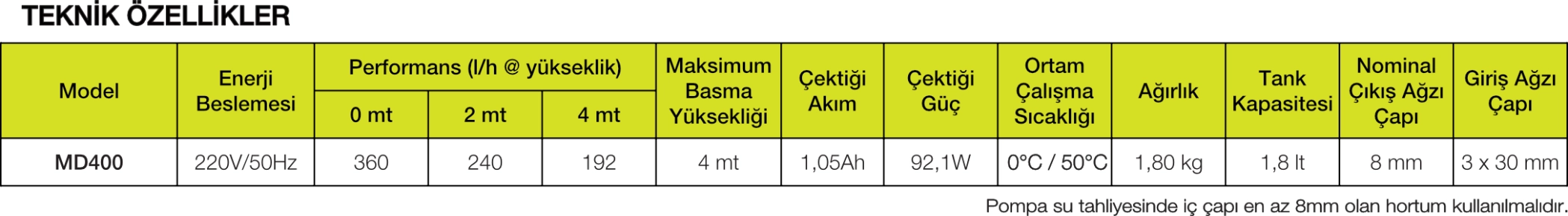 - 1,8lt tankı ile büyük kapasiteli klima ve soğutma cihazlarının kondens sularının tasviyesi için ideal